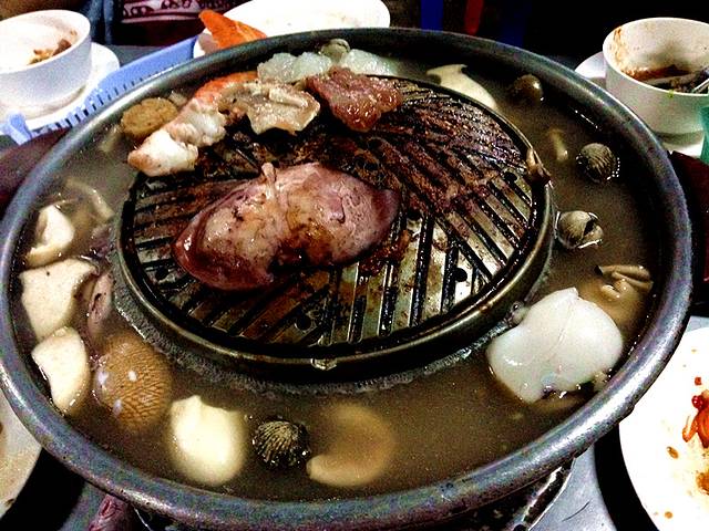 其实他们家值得称赞的不是火锅本身,而是他们家的酱料,因为酱料太好吃导致我忘记拍照了,酱料切记不要混合起来,容易串味,边上那桌的小姑娘吃完说这是她吃过的最难吃的火锅,但是我却觉得蛮不错的,估计是她把酱料混在一起所以吃不到精华吧,推荐绿色的酱,和烧烤搭配很好吃,这种酱其实就是我去年在普吉岛的普吉镇海鲜大排档吃的搭配的酱料一样的味道,还有一个是泰式甜辣酱调入蒜泥,味道也好,另外两个酱料虽然印象不深但是也还可以,所以千万不要混起来,会串味。泰式火锅是偏清淡的火锅,边上煮的高汤都是清汤不像川味火锅汤底重口味,不过卤煮是喜欢清淡口味的火锅,所以喜欢川菜那股重辣味的亲估计是不大中意的吧