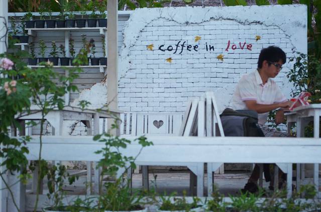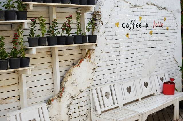 这家咖啡店的装修充满小清新味道,白色的两层小楼,民族风的装饰,以及种满蕨类植物的小院子,树上挂满了各种鸟笼,坐在花园里点杯咖啡听着假山的流水声可以慢慢消磨一下午