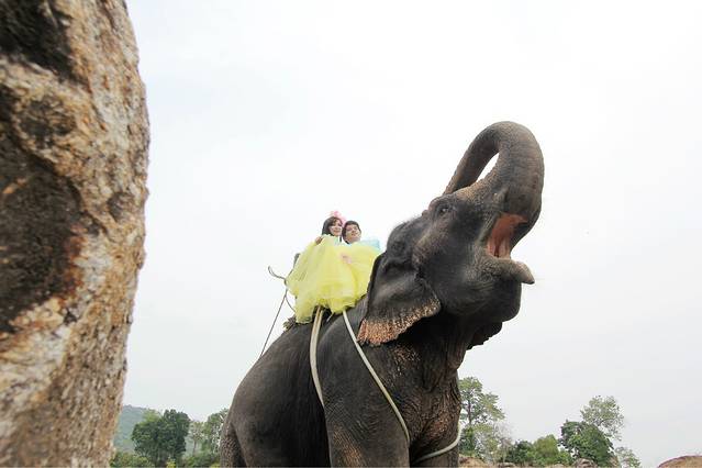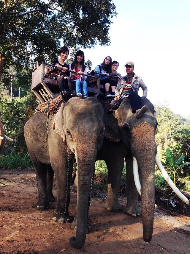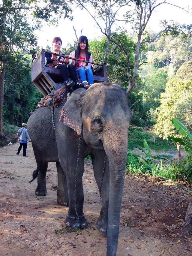 先写早上骑大象的内容吧,媚沙大象营半日游我是在汉清迈订的,在国内就订好了,因为汉清迈在淘宝新开了店,为了不浪费游玩时间我直接在出发之前在淘宝上定了半日游,145一人,不算很贵吧,中文导游,包含接送,骑大象30分钟,看大象表演,喂大象(香蕉提供一人一份)以及大象表演,骑大象上次在普吉岛的时候拍婚纱照骑过,这次主要是带妈妈们骑大象的,不过大象真滴好萌萌哒,好聪明