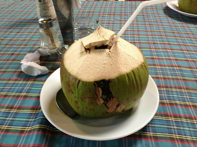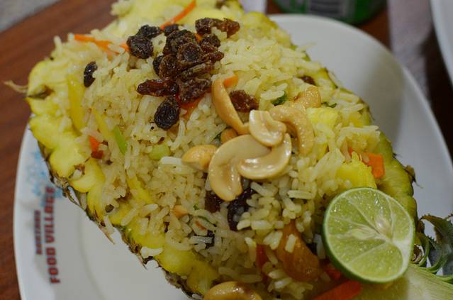 5、皇帝岛:Raya father 虾仁炒饭、腰果炒鸡块、凉拌木瓜丝、新鲜椰子