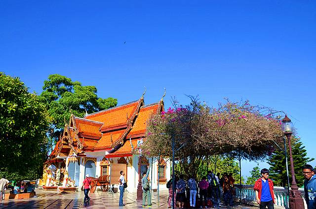 参观完清迈大学出去吃了个午饭找了辆双条车上山,清迈大学门口有专线上山的双条车,一个人140泰铢,就在坐观光车的地方,司机会带你去参观蒲屏皇宫和双龙寺两个景点,大概用时4小时,司机一般不会催你,我们是总共花了3个多小时就看完了,相比起古城的景点,我们同行的都认为素贴山的两个景点还是古城的有味道