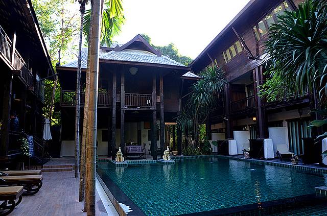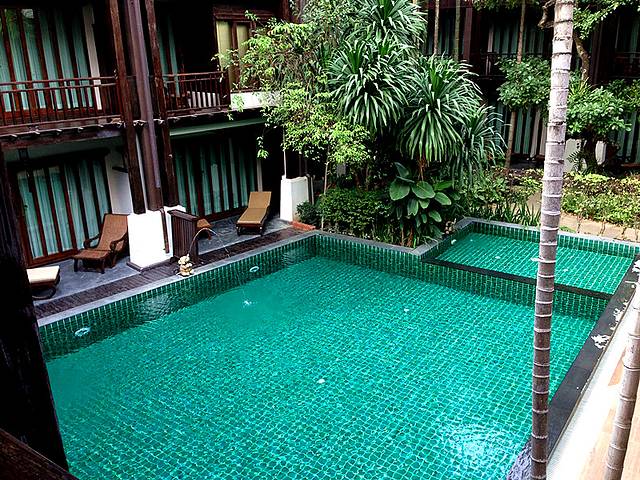 Yantarasri在网上挂的级别是四星级酒店,我们定的时候是432/晚,从酒店设施和服务水平等来看差不多是有四星级,洗漱用品齐全(没有牙刷,需自备,泰国酒店大部分都是没牙刷的)并且沐浴露洗发水护肤乳都是薰衣草味道虽然是灌装的但貌似不是劣质货,酒店有泳池,一大一小,可惜那几天气温低不能游泳。保险箱冰箱等齐全,每天送两瓶免费的水和咖啡,房间还是很开阔的,整个酒店的设计都是泰式风格,个人比较推荐一楼和二楼的房间,三楼房间没有阳台采光通风估计不是很好