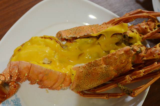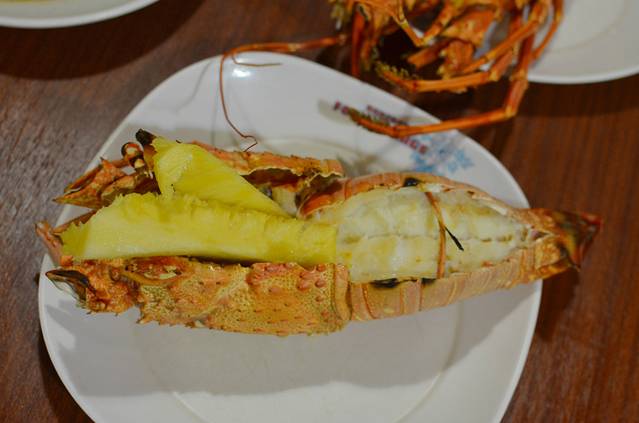 最最最值得推荐的就是左上角的咖哩蟹,我一口气啃了大盘,都忘记拍照了,回过神来的时候都吃完了。都说曼谷建兴酒家的咖喱蟹好吃,后来去曼谷也试了下,确实不错可是还是觉得这家店做的最好吃。整桌菜大概1500B,点菜员现场称给我们看的,价格很透明