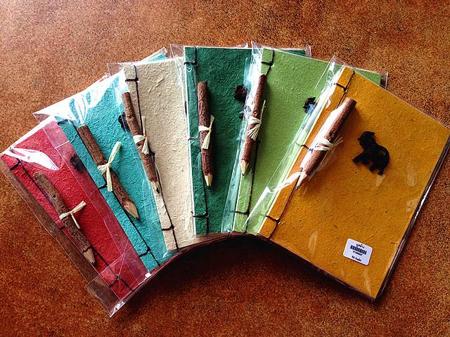 这个是在大象营买的用象粪纸做的笔记本,木有味道滴,哈哈,50泰铢一本,买回来送给小朋友