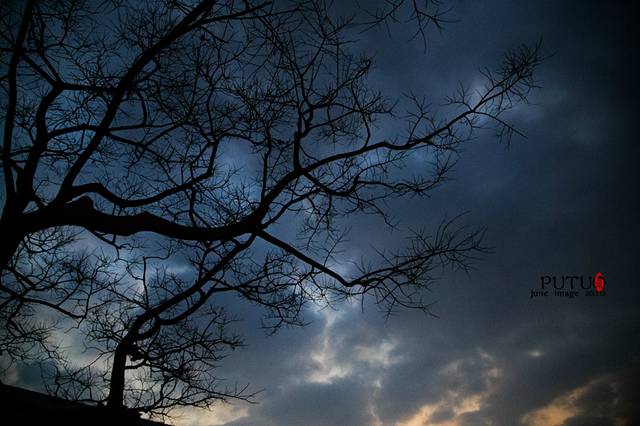 还为落尽的红叶在昏黄的路灯下显得格外的火红。
