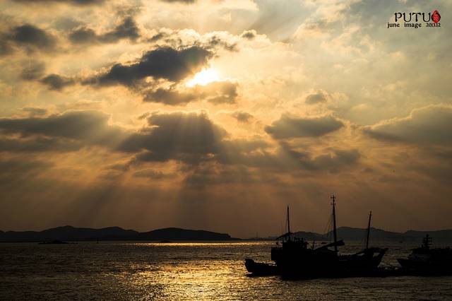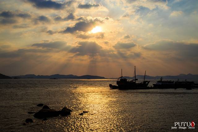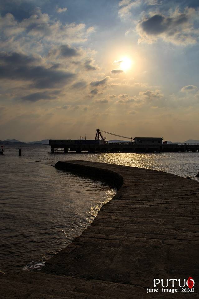 住好客栈已是下午三点多,整个岛却沉静在夕阳余晖的金色里。码头上拉客的农家乐很多,还很热情的说当天是观世音菩萨的生日,要我们赶紧去报道,而且不能空手去。其实我们真不喜欢这样的话,空手就不算拜佛了吗?