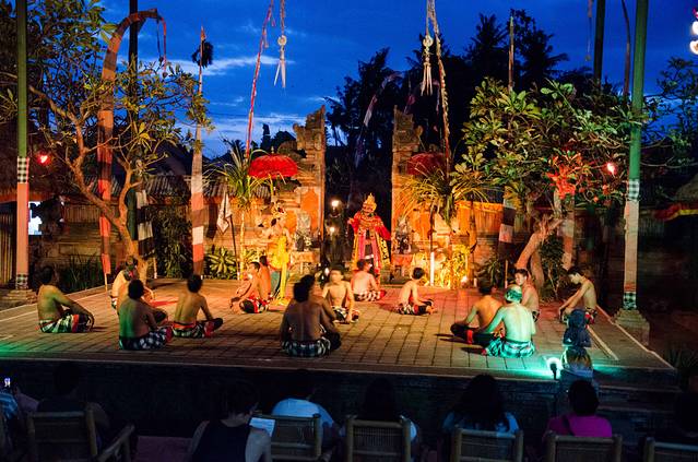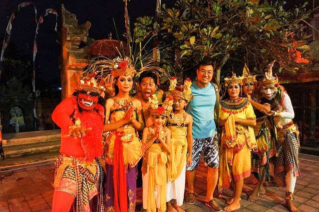 Ubud本来是有个Kecak Dance的,不过只有周三和周六开演,我们没能赶上,为了不留遗憾,驱车40分钟去了Batubulan看那边的一个Kecak Dance。门票每人100000 Rp。演员们都很卖力,整体效果挺有感染力的,但出来后团员纷纷表示没看懂……好吧,我再做一次好人在这里普及一下Kecak Dance的故事梗概: