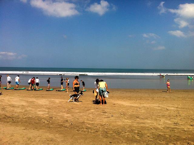 实际上Kuta Legian Seminyak海滩都连着,冲浪的地方距我们住的地方还是有几公里路程的。本来想找个冲浪学校学学,结果Dani自告奋勇要当我们教练我也就没推辞。