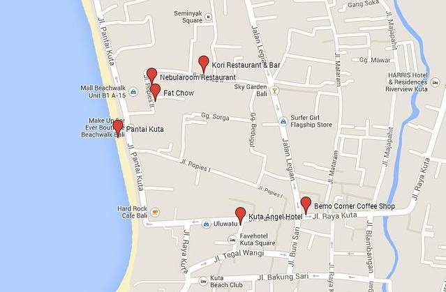 即将结束Kuta部分,附一张各餐馆位置图造福大众~