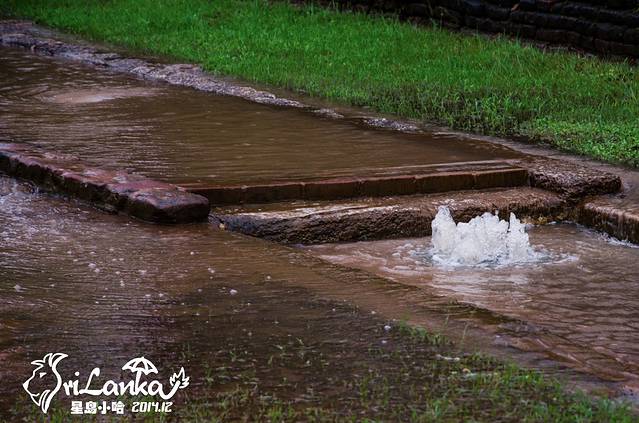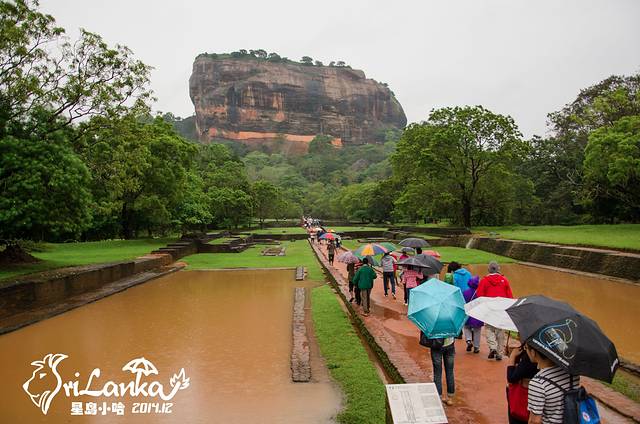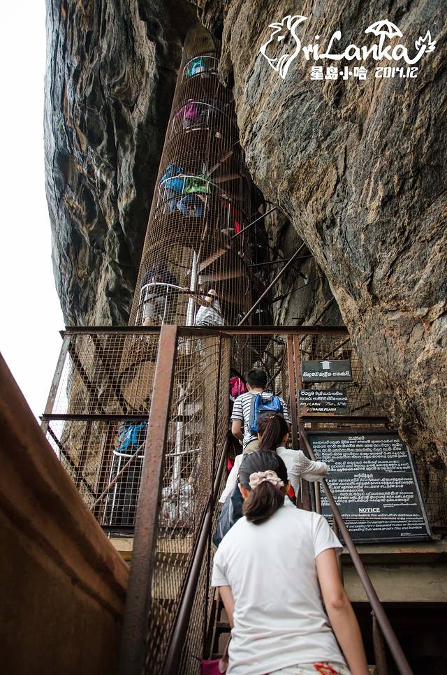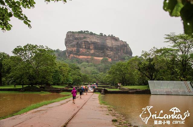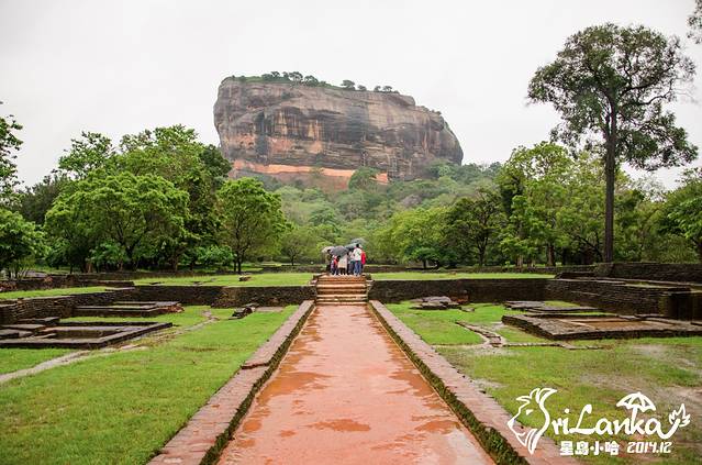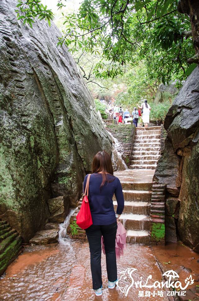 26日一早去Sigiriya,也就是狮子岩,有说是国王宫殿的,后来考古学家又说这其实是个修道院。这些都不重要,重要的是依然在下雨,石阶都变成人工瀑布了,而且爬到一半差点被大风吹下来……
