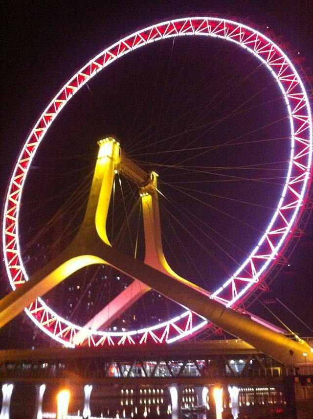 随后出发去天津之眼。天津之眼70元一位,八个人一个舱(也有包厢的)。天津之眼不赘述了,都可以自己查到。特别提醒!!晚上才好看。下了摩天轮,可以买孔明灯(10块三个)和长此花(我让他送我俩),自己觉得钱合适可以多买。总之很开心的。