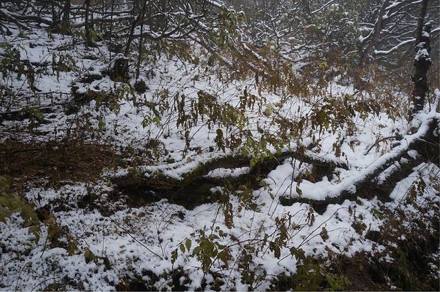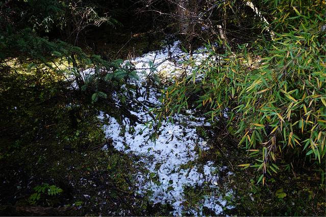回到了诺日朗,乘车前往近3000米海拔的原始森林,看到了此次出行的第一片雪。