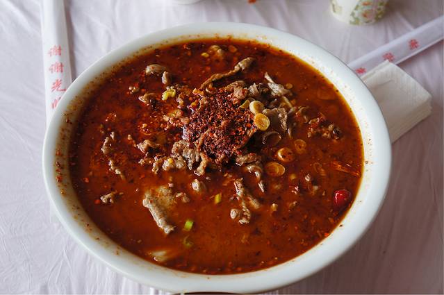 拿了行李出来天色已有些暗了,一出机场就是各种黑车招揽生意。一开始对绵阳物价完全不知,在经与第二日打表对比发现,黑车开价果然黑啊,不过人生地不熟难免被宰,嘛,嘛。。大虾姐姐把我们放下酒店check in时去附近的汽车站取网上预订的明天去九寨的车票。虽然绵阳人民的工作思路是不太清楚额,但还算顺利check in后,首要解决问题当然只有,吃!找了一家看起来门面堂皇的就冲进去打牙祭啦~是说,同行3人都相当能吃辣,瞬间我就气弱了。。。