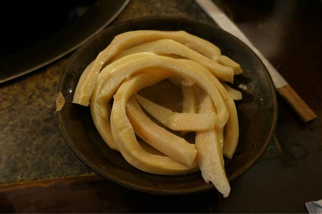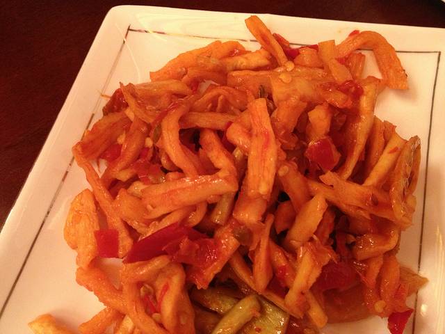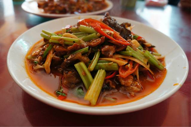红杏鸡,招牌菜,应该就是口水鸡,只是吃完了鸡,可以把边上的笋放进去吃,鸡肉挺嫩,可是笋更嫩!给笋好评!