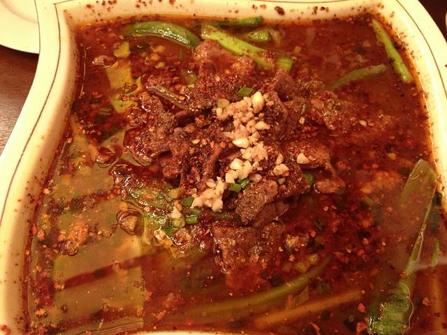 水煮江团,鱼是我的爱,鱼是我的命啊~~~吃了好多~鱼肉那叫一个嫩,汤很稠,但不算辣,也不知道是不是我被辣麻木了~~~