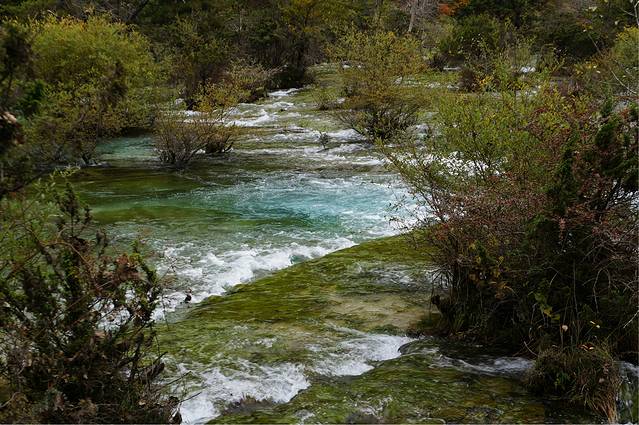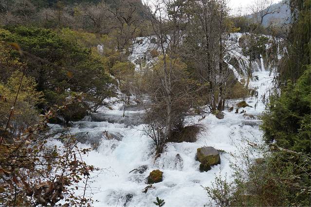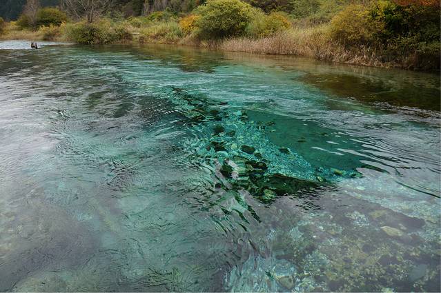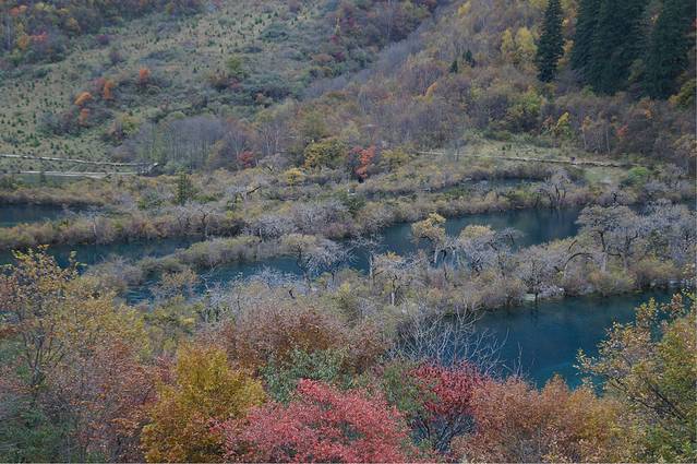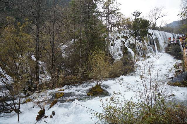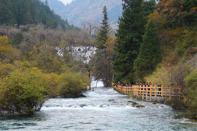 总体而言,从树正寨往出口的这段景区游客比较少,团队游客大多都是观光车行过看过罢了