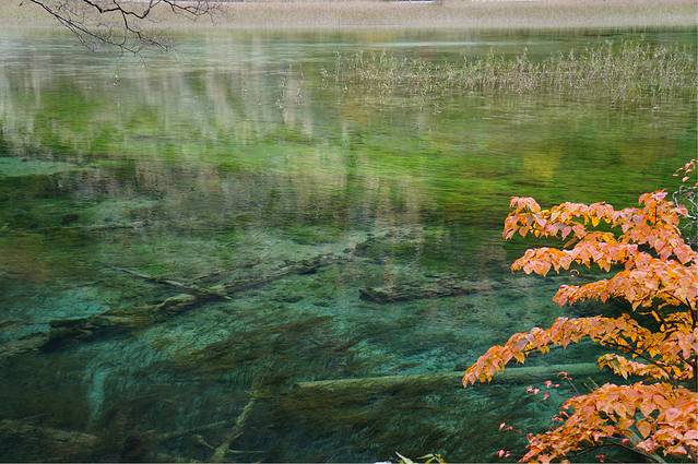 九寨沟不同海子大小不一特色不同,但多达108个海子不断看湖水看秋色中不免我的如下记忆略有差池,但绝不影响欣赏九寨秋色尽染的美和震撼!