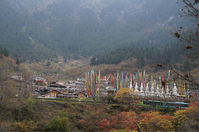 行至此,已近正午12时,开始向则查洼沟尽头长海前进。搭乘观光车回到诺日朗,继续转乘前往长海的车,一路上行的游客较少,一来休息一番,一来粗略瞭望下则查洼沟的景色