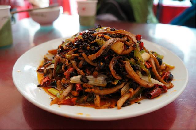 今天睡到自然醒(其实没有),起床整理行李,一直到12点check out,寄存了行李,我们能有什么出息呀,又是去吃午饭啦!来成都一定要吃苍蝇馆子啊,我们去了一家号称成都坡姐推荐的馆子,离得不远,步行过去,顺路又买了些带回去的土特产。