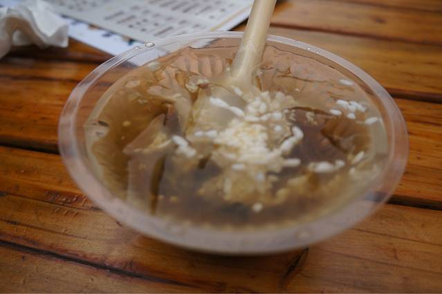 豆腐花、红油抄手,都超级辣,我浅尝即止,朋友吃的那叫一个欢,想来多不爽啊,买了个黄醪糟尝尝,瞬间很解辣,呼啦呼啦~