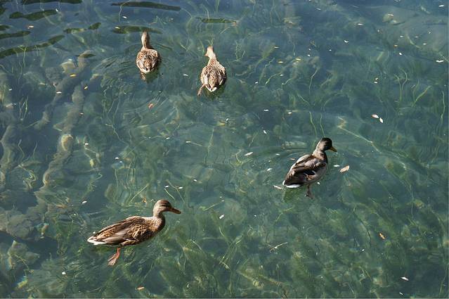 箭竹海因前几年全面开花老竹换新芽,号称近几年都无法见到盛况,所以,几乎没人会留意海子周围的竹子,反而湖中游来几只鸭子,引得很多人驻足照相