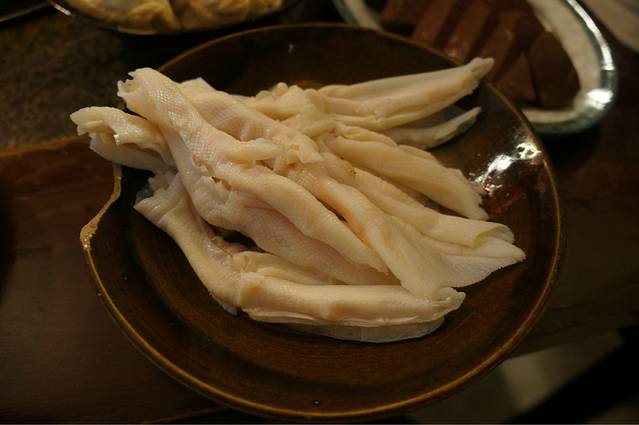 一口气,我们又把几乎所有的菜都点了~一口气,店员把所有的菜都上齐了,一个个大盆,桌上根本摆不了,另给了个落地架也塞了个满~四个吃货憋了几日的味觉大开放,大享受啦!千层肚,毛肚,黄喉,鹅肠,排骨,肥牛,黄辣丁,金针菇,藕片,血。。。我可以说全部都很美味嘛!总之随便点,配上蘸料绝对满意!红汤我都从跃跃欲试到了欲罢不能,白汤也是极其鲜美回味无穷!