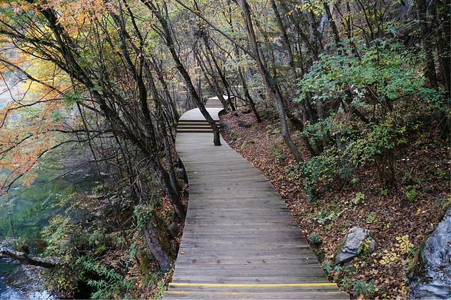 同时,我们为了极大程度的错开团队游人潮,并未选择直接先去长海再往下一路玩的路线,而是顺势从树正寨往出口走,而且因为2日行游玩的宽裕,很多路程我们都以徒步栈道的方式游玩,并且不选择去诺日朗中心就餐而是自备干粮自由调整休息时间,这也再次证明了我们的选择在避开人潮和游玩尽兴两点上都及其成功,哈哈哈~~~