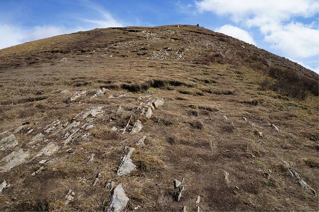 这座山是标准的世上本没有路,走的人多了便成了路。。当然,也可以说是走的马多了。。。一路踩着碎石泥地小心牛粪中招,一步步向上爬去,果然高原登山绝对是个体力活儿,没走几步就有些喘了,回头望望黄河。