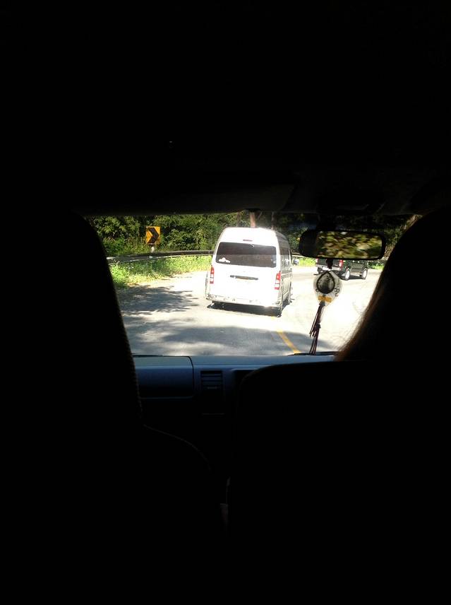 司机会按照预订的时间来酒店接人,不过一开始是双条车来接,把人都送到Aya service在清迈的客服中心,出发也是在客服中心停车场出发。双条车也是挨个酒店把人接上车,所以需要稍等个15-20分钟。感觉去拜县的包车服务,与别的业务稍有不同,上文提到去黑白庙的时候司机大哥非常nice,但是去拜县这个就不一样,LZ因为住的地方比较近,所以是最先上车,后面上车的一些游客几乎没有位置可以坐,行李也是扔在双条车顶,看起来不太靠谱,有游客上车的时候提出异议,这么挤没法坐,司机当场就有点发飙,用英文跟游客说,你觉得可以就走,觉得不可以我就不走了。游客当然无言语,司机的态度是不太好的。不过确实双条车接人也就挤10分钟,送到客服中心以后,就换成了mini van,保证一人一个座位。
