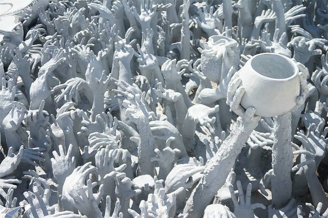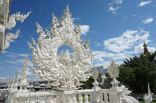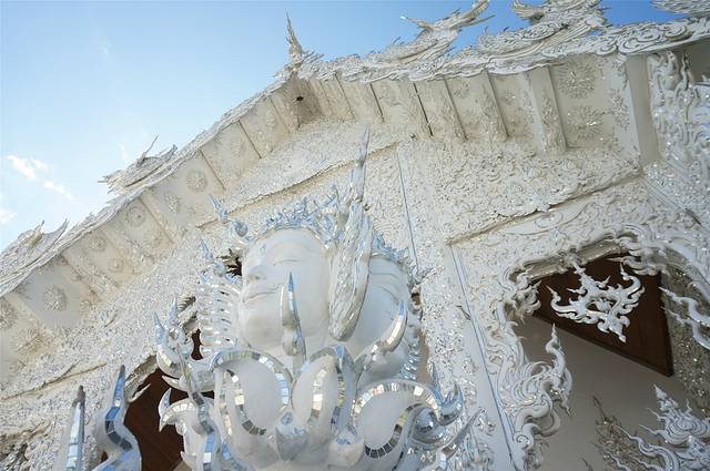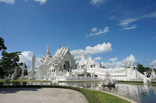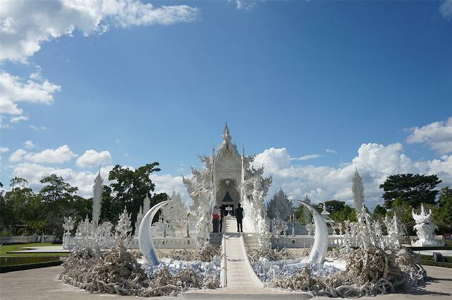 我觉得白庙黑庙是整好相反,黑庙安静隐秘,白庙耀眼夺目。白庙确实漂亮,鬼斧神工,第一眼看到白庙的时候就很感叹,蓝天白云下的白庙闪烁生辉,让人赞叹不已,好像整个白庙跟蓝天是融为一体的,是在让人佩服。