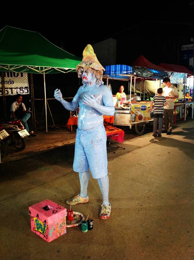 晚上我们逛了一下拜县的夜市,跟清迈的夜市比较,拜县的夜市规模小得多,也不外乎是手工艺品,T-shirt,特色衣裤,小吃等等,当然也有很多街头艺术的人。