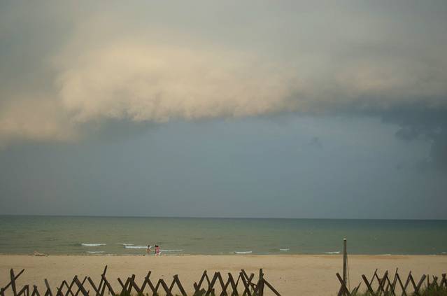 下午六点天气开始变了,这是暴风雨前的海滩,隔壁屋的三位美女刚下海呢,幸好我已经回来了