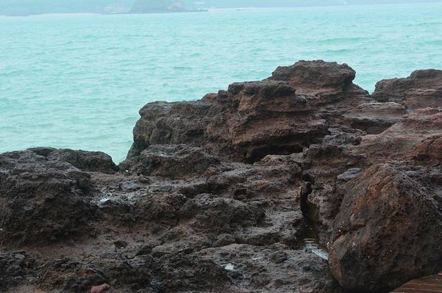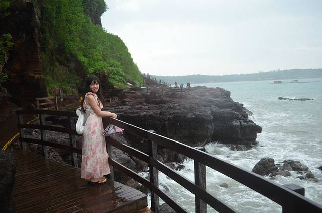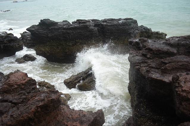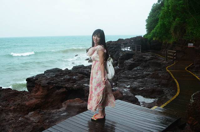 毕竟是4A景区,路还是比较好走的,比五彩滩好走多了,在五彩滩我差点摔倒。鳄鱼山公园的海岸都是火山石灰岩侵蚀出来的,当天风大,拍打在岸边岩石上的浪打出很高的水花还是挺漂亮的,风平浪静的时候估计没那么高的浪吧
