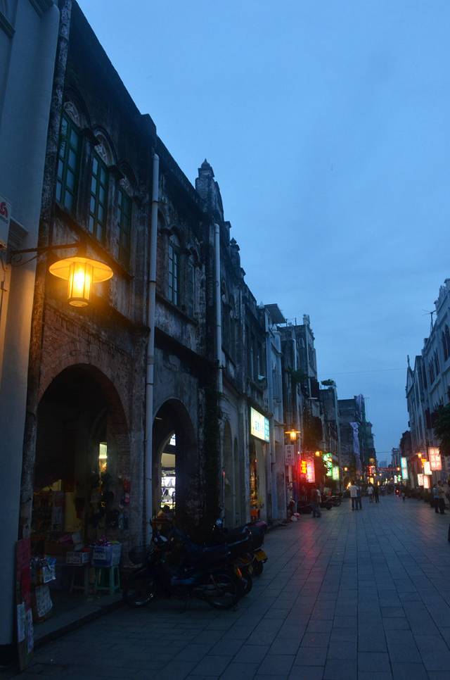 去吃晚饭前顺便去了老街,很近,坐小三轮过去也就五分钟,天快黑了,街边店铺已经亮了灯,傍晚的老街景色也还ok