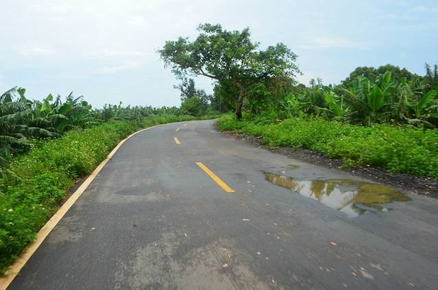 第一站是去五彩滩,位于岛上的东海岸,天气晴朗的话据说才五彩滩看日出也很不错哦,去五彩滩的路上走的是这样的乡村小路,只有岛上当地人才知道这错综复杂的道路,去得路上到处都是香蕉树,岛上香蕉很便宜,1块钱一大把,据说岛上香蕉猪的肉特别好吃,因为是吃香蕉长大所以叫香蕉猪,不仅是香蕉猪,我还看到了吃香蕉的羊,不知道是不是叫香蕉羊