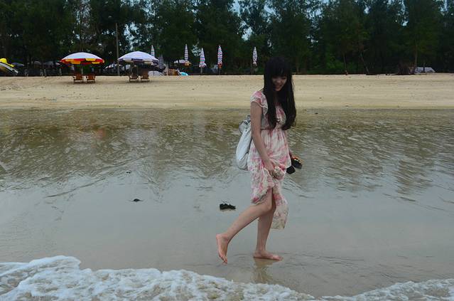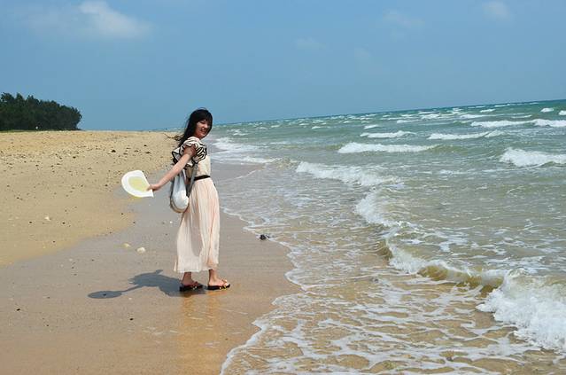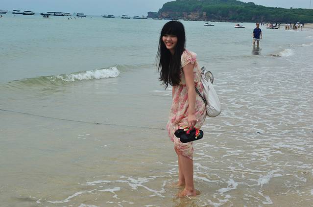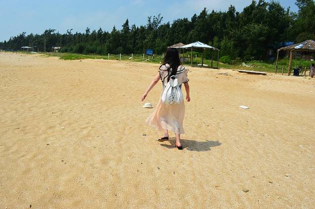 银滩的得名就是这条长长的白色沙滩啦,不过我一直以为白色的沙子会一直延伸到海里,但其实不是的,看我身后的银滩还是有很明显的分界线,越靠近海边沙子越黄
