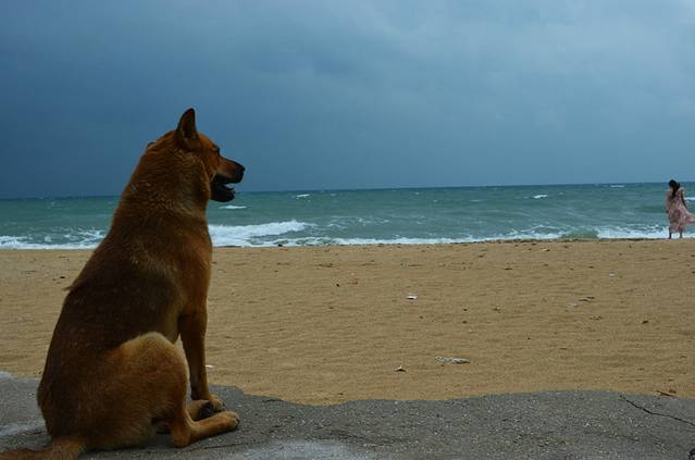 早上的天气一直不好,时不时下雨,起床就已经九点了,慢悠悠吃完早饭在附近海滩和环岛路上逛了一圈,我们的行程没有排的很紧,因为我一直认为旅游就应该慢悠悠的,即使是这样,岛上还有好多地方没细细品味呢,比如猪仔岭,真应该等退潮去爬一爬的。早上起来的时候老板家的一只汪酱就一只跟着我们一起在海滩散步,我们走它也走,还时不时回头等我们,真心羡慕他们生活在这样的美景中