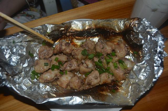 船靠岸就五点半了,回到北海我们还是住第一天来的时候的宾馆,老板过来接我们,安顿好之后我们就去市区吃晚饭,老板娘推荐我们去北部湾广场对面的长青路,确实,那边的东西很便宜,不过基本以烧烤摊为主,我们找了家北海人开的夜宵摊点了海鲜炒河粉和烧烤,图片中的河粉8块钱,里面好多螺肉。不过我发现这边的小吃摊很少放醋,都是放酱油,这几天吃饭下来,基本每家饭店我要醋都没有,涠洲岛上也是,不过味道还是不错滴。