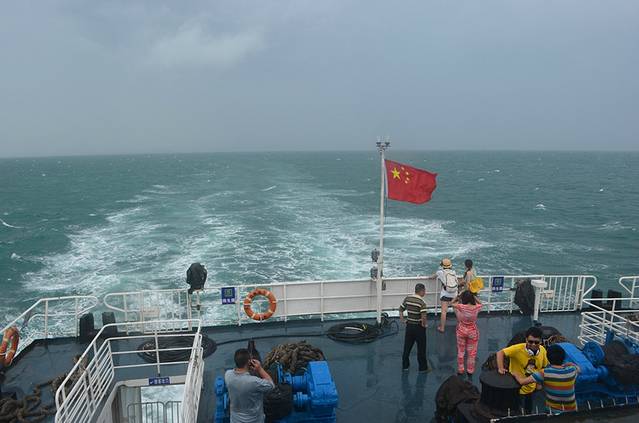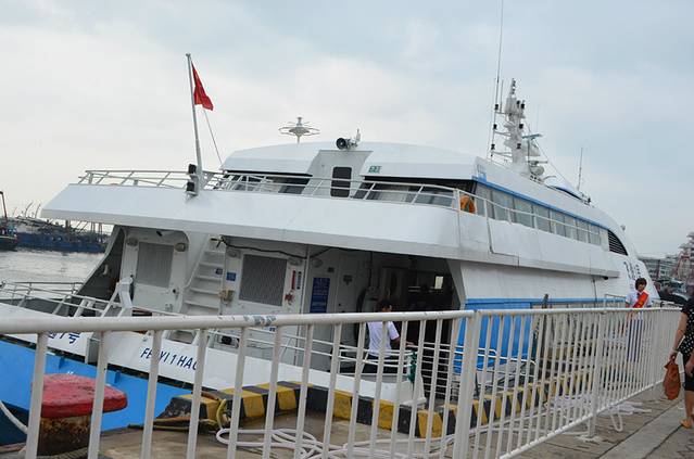 下午到了码头下过一阵暴雨之后天气开始变好,但风浪还是很大,被告知我们的北游8号改成了慢船北部湾1号,晚开一个小时,我顿时松了口气,虽然时间久点,要两个半小时,但好歹大船比小船稳很多,不过即使这样,当天飞逸1号快船还是开的,据说是抗风浪能力比较强,可是这么大的风浪船得多颠啊
