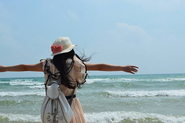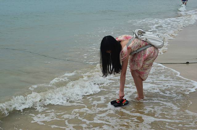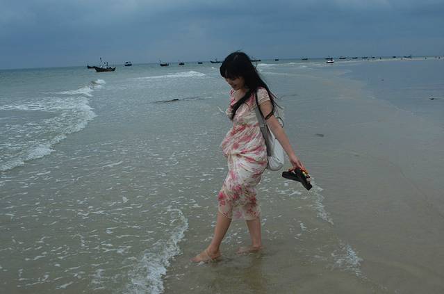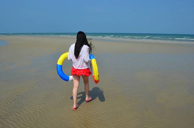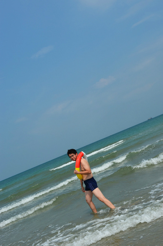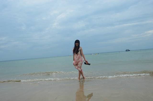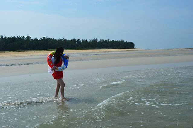 趁着下午退潮的时候赶紧去游泳,其实我们两都不会,纯粹是玩水,涠洲岛太阳落山晚,五点钟的太阳还是蛮晒人的,去游泳注意防晒哦