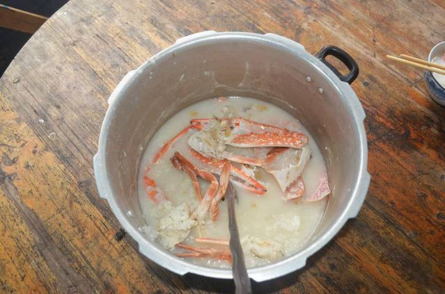 早餐吃蟹粥,蟹是昨天买的放在老板冰箱