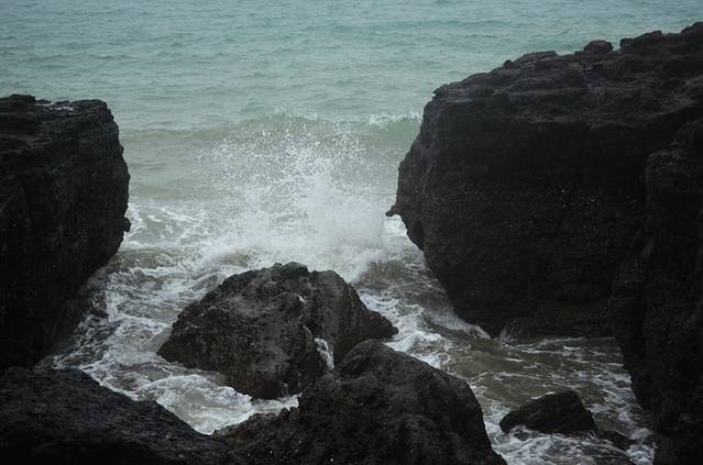 这就是五彩滩,据说晴天的时候太阳照在海滩上石头会折射出不同颜色的光所以叫五彩滩,可惜我去得时候风雨交加,差点没把我刮跑,更别提什么五彩滩了