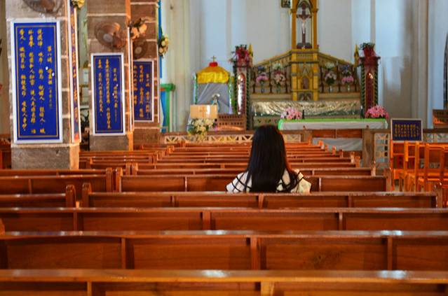 天主堂这个景点只有散客才能去玩,据说是因为当地岛民和岛上管委会的矛盾,所以旅游团过去他们会不让进,难怪人好少的。我们去的时候天主堂还在修缮,所以另外一边就没拍了