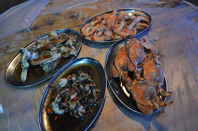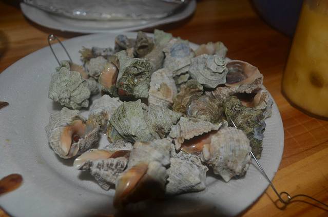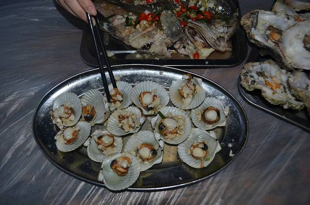 这是我们的晚餐,全海鲜,都是镇上菜市买了让宾馆厨房加工的,一般一个菜也就10块钱左右加工费,很便宜,因为我们住的地方离镇上很远,得穿过整个涠洲岛,所以每天下午师傅都会拼车带大家去买海鲜,很多人一起去的话蛮划算的,50块一次,尹师傅的车可以坐八个人