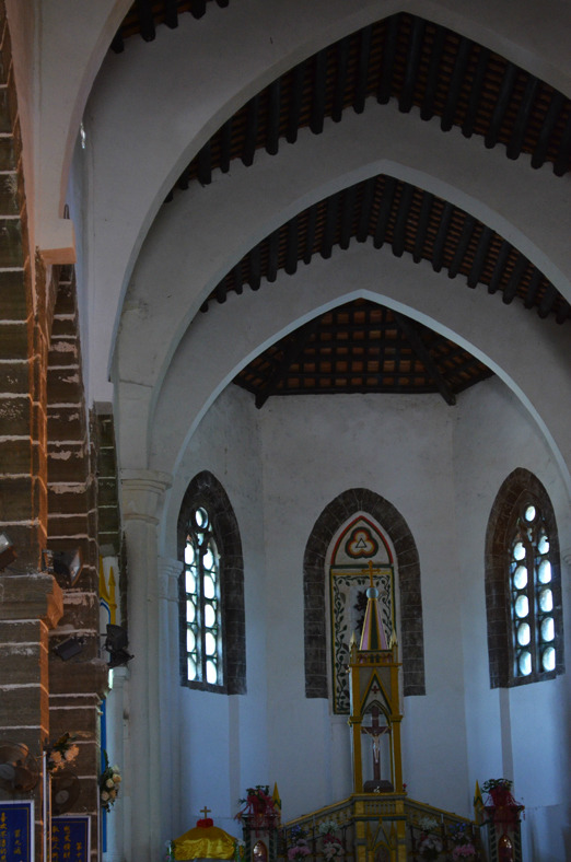 吃过午饭之后去了天主堂,据说岛上80%岛民信奉天主教。我们住的海边小木屋位于岛上东北角,离天主堂2公里,走路估计15-20分钟,不过去得时候很幸运正好碰上宾馆的司机师傅去天主堂附近买东西顺路带了我们一程,第二天的环岛游也是让尹师傅带我们去了,150块钱包了一天,师傅人挺实在的,还告诉我们怎么防止被宰客,中午带我们去吃了很实惠的小吃。像这种包车游带你去玩的人很要紧,要是碰上奸诈的带你去吃什么海鲜大排档不知道会被宰多少,岛上没有公交车,一般普通的三轮车等上车就30,所以环岛游建议还是包车吧,岛上路还是挺复杂的,当地人带着至少不会迷路,不过要是时间充裕可以租电瓶车,80块一天,千万不要租自行车,除非你是骑行族,因为岛上的上下坡很多,骑自行车会把你累死。