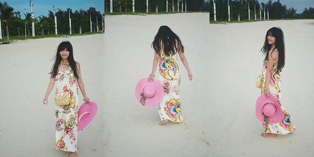 岛上的风很大,帽子被吹掉好几次,后来这顶帽子终于在我下午玩海的时候成功被吹进了海里,结果还被我们家那位拿去房间冲了冲淡水拧了两把彻底报废,哎~我最喜欢的帽子啊~就这样寿终正寝了,各位怕晒的MM们记得带有绳子的帽子,以免被吹跑