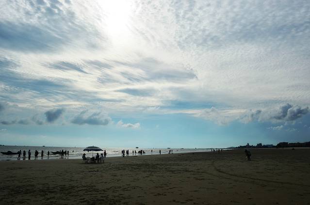 傍晚去了银滩,原本想等日落,当天虽然天晴,但是云还是蛮多的,又无缘日落了,哎~
