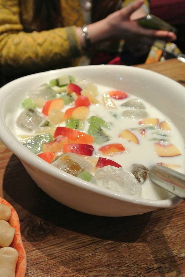 还有超大份的酸奶水果捞,不过这个有点点贵。一份烤鸡+水果捞+3瓶CASS一共花了47000。