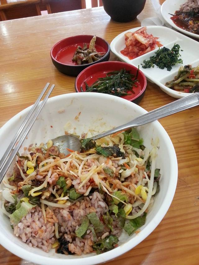 爬了山,饿到不行,我和Mega在90路总站附近找了一家店吃饭,印尼女生特别受不了把菜和饭拌在一起,于是帮她点了章鱼饭,饭是饭,章鱼是章鱼分开的。我点了蔬菜拌饭~~ 就爱拌饭啊~~ 不愿因吃拌饭的人不能理解啊,话说这个地方拌饭也太便宜的了,我印象中好像就4000.