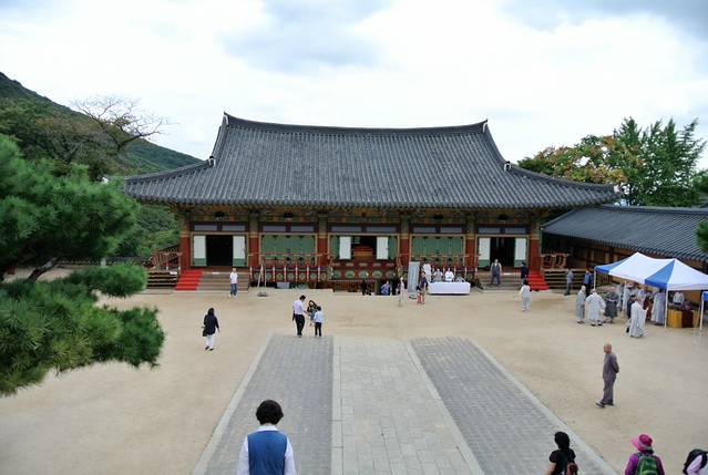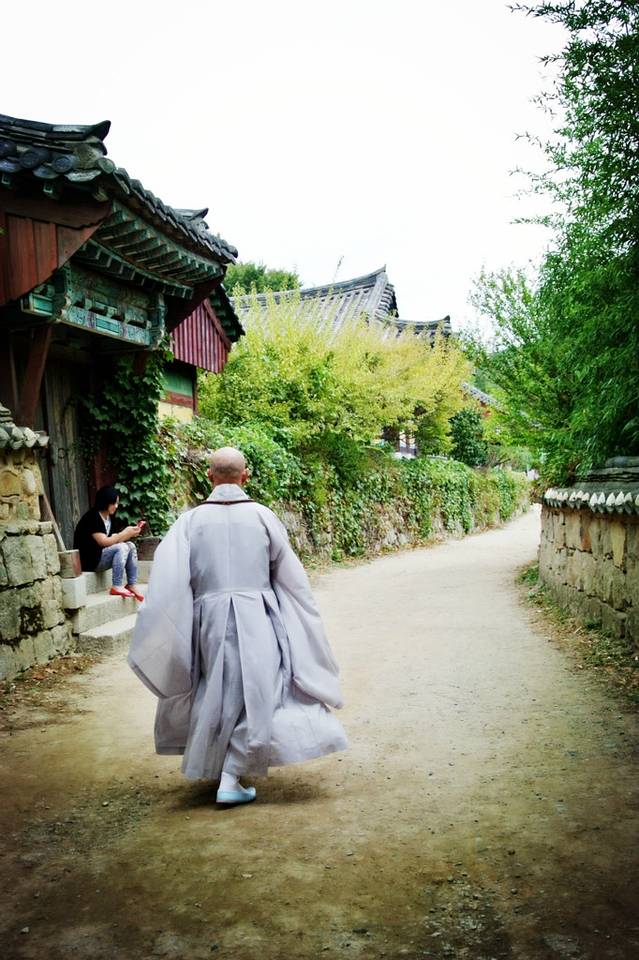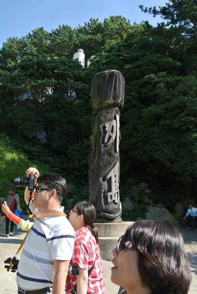 梵鱼寺真是太艰险了,后来我们就没再往山里走,大妈大爷们都穿着登山服,拿着登山手杖,超级专业的。在梵鱼寺特别巧,遇到了一个美国女生和一个韩国男生,在海云台出青旅的时候就看到他们了,他们应该是住在sunset hotel,后来在海东龙宫寺也看到了他俩,直到梵鱼寺我们又见到,互相都觉得好神奇。看来今天的路线是喜爱寺庙的人普遍选择的啊。更神奇的是,那个韩国男生读的中文系。。。于是回去的路上变成了,我和韩国男生聊中文,印尼女生和美国女生聊英文。